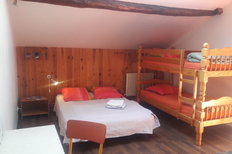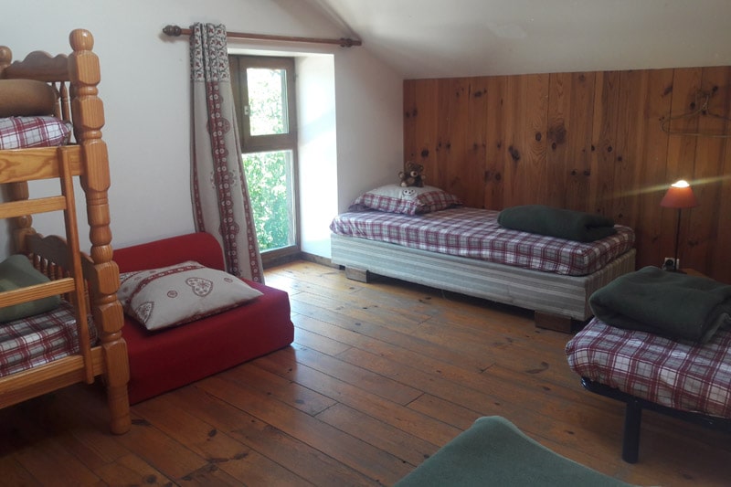 - Chambre 4 : un lit à étage, 1 lit simple, 1 lit double.
